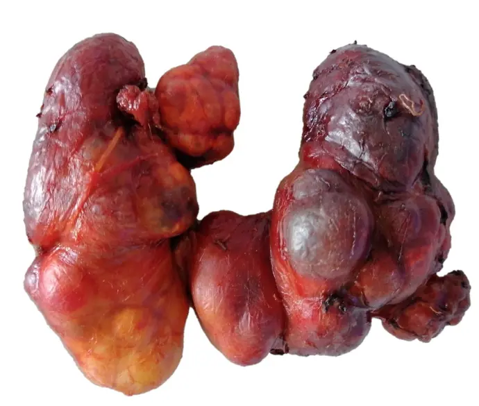 الأعراض: ظهور كتلة في الرقبة، صعوبة البلع، بحة في الصوت.