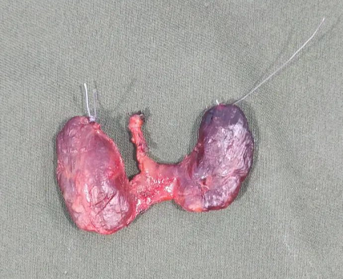 تلف الغدة الدرقية بسبب العلاج أو الجراحة.